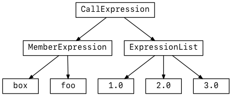 A IdentifierLiteral would load a value from the current scope, a CallExpression would invoke a pre-defined function and so on.